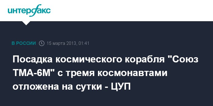 Москва. 15 марта. ИНТЕРФАКС-АВН - Комиссия в центре управления полетами в ночь на пятницу приняла решение отложить на сутки возвращение трех космонавтов с Международной космической станции в связи с неблагоприятными погодными условиями в районе посадки в Казахстане.