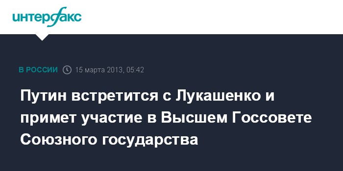 Путин встретится с Лукашенко и примет участие в Высшем Госсовете Союзного государства