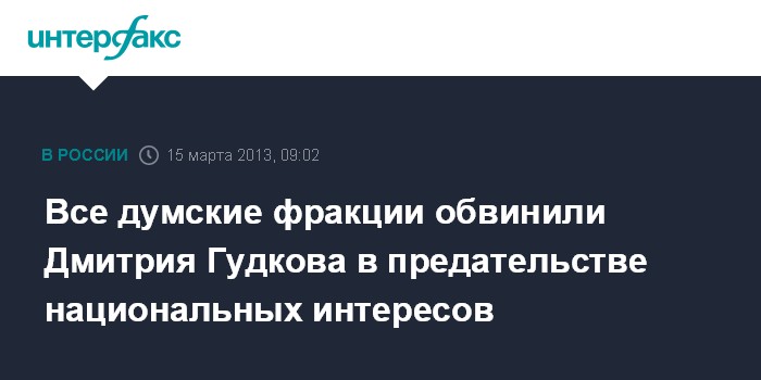 Москва. 15 марта. INTERFAX.RU - Представители всех четырех фракций Государственной Думы предлагают комиссии по вопросам депутатской этики дать оценку действиям члена фракции "Справедливая Россия" Дмитрия Гудкова в связи с его участием в антироссийском форуме в США.