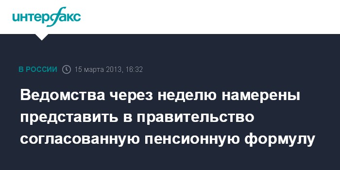 Санкт-Петербург. 15 марта. INTERFAX.RU - Ведомства через неделю представят в правительство согласованную пенсионную формулу, сообщил министр финансов Антон Силуанов журналистам в пятницу.