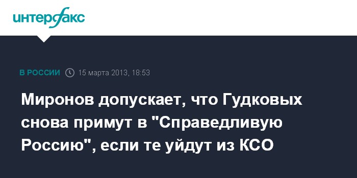 Москва. 15 марта. INTERFAX.RU - Лидер "Справедливой России" Сергей Миронов не исключил, что теоретически Геннадия и Дмитрия Гудковых могут принять обратно в партию, если они все же выйдут из координационного совета оппозиции (КСО).