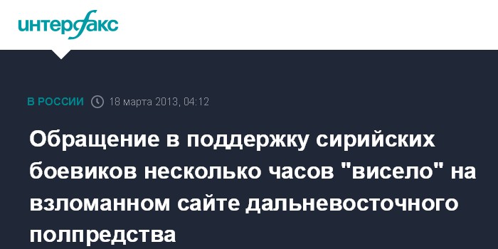 Обращение в поддержку сирийских боевиков несколько часов "висело" на взломанном сайте дальневосточного полпредства