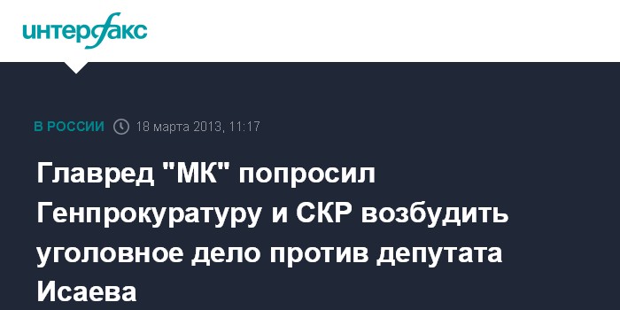 Главред "МК" попросил Генпрокуратуру и СКР возбудить уголовное дело против депутата Исаева