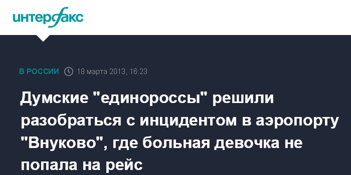 Думские "единороссы" решили разобраться с инцидентом в аэропорту "Внуково", где больная девочка не попала на рейс