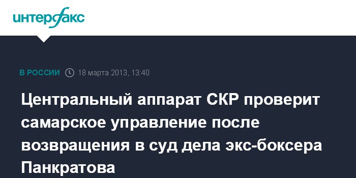 Москва. 18 марта. INTERFAX.RU - Следственный комитет РФ направляет в Самарскую область комиссию для проверки деятельности регионального управления после возврата судом резонансного уголовного дела против экс-боксера Виталия Панкратова, забившего до смерти посетителя магазина.