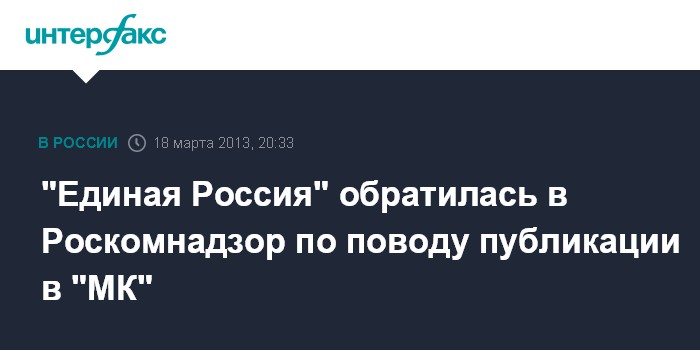 "Единая Россия" обратилась в Роскомнадзор по поводу публикации в "МК"