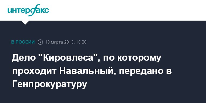 Дело "Кировлеса", по которому проходит Навальный, передано в Генпрокуратуру