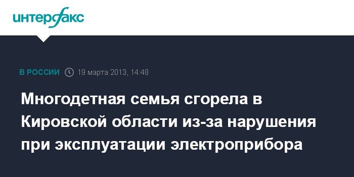 Многодетная семья сгорела в Кировской области из-за нарушения при эксплуатации электроприбора