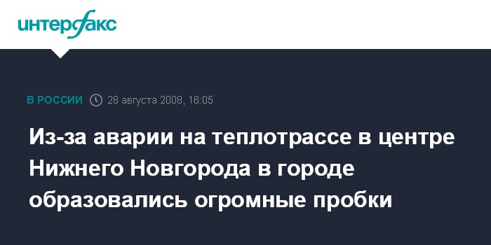Москва. 28 августа. INTERFAX.RU - В центре Нижнего Новгорода в ночь на четверг произошла авария на магистральной теплотрассе, в результате чего произошел обвал грунта, и в течение дня затруднено автомобильное движение.