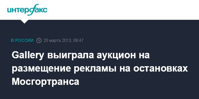 Москва. 20 марта. INTERFAX.RU - ГУП "Мосгортранс" совместно со столичными департаментами транспорта и развития дорожно-транспортной инфраструктуры, СМИ и рекламы подвело итоги аукциона на размещение наружной рекламы на остановочных павильонах наземного пассажирского транспорта.