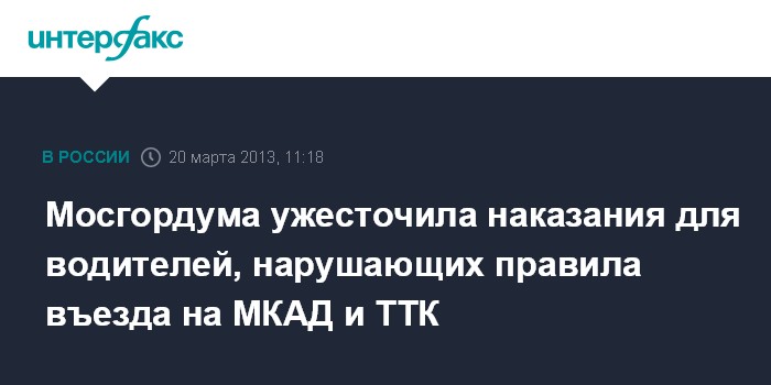 Мосгордума ужесточила наказания для водителей, нарушающих правила въезда на МКАД и ТТК