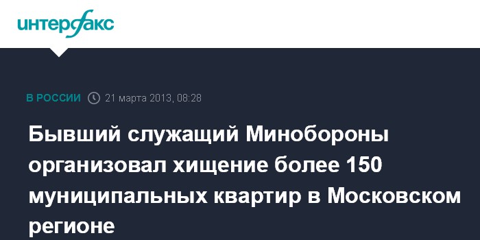 Бывший служащий Минобороны организовал хищение более 150 муниципальных квартир в Московском регионе