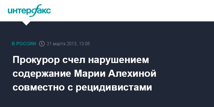 Прокурор счел нарушением содержание Марии Алехиной совместно с рецидивистами