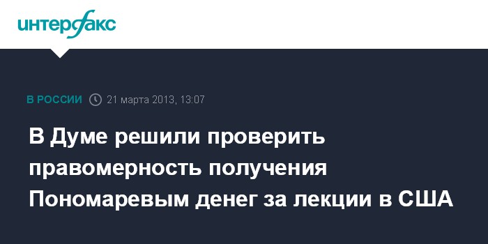 Москва. 21 марта. INTERFAX.RU - Комиссия Госдумы по контролю за доходами депутатов в четверг приняла решение начать проверку в отношении правомерности получения депутатом-эсэром Ильей Пономаревым материального вознаграждения от Массачусетского университета США за целую серию своих лекций в поддержку развития инновационного проекта "Сколково".