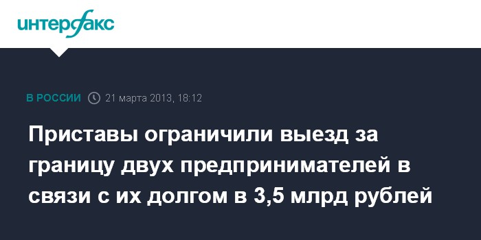Приставы ограничили выезд за границу двух предпринимателей в связи с их долгом в 3,5 млрд рублей