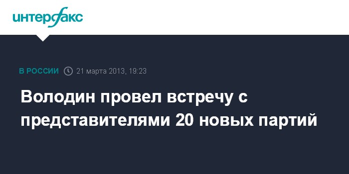 Москва. 21 марта. INTERFAX.RU - Первый замглавы Администрации президента РФ Вячеслав Володин встретился с активом 20 новых непарламентских партий, сообщил "Интерфаксу" источник в Кремле.