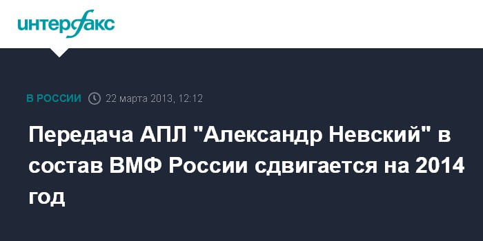 Передача АПЛ "Александр Невский" в состав ВМФ России сдвигается на 2014 год