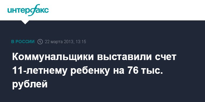 Коммунальщики выставили счет 11-летнему ребенку на 76 тыс. рублей