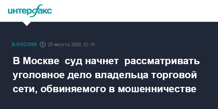 В Москве суд начнет рассматривать уголовное дело владельца торговой сети, обвиняемого в мошенничестве
