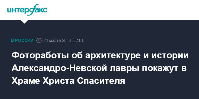 Санкт-Петербург. 24 марта. ИНТЕРФАКС СЕВЕРО-ЗАПАД - В Храме Христа Спасителя в понедельник открывается фотовыставка "300 лет бытия Свято-Троицкой Александро-Невской лавры".