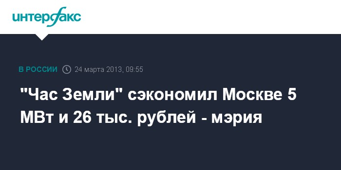 "Час Земли" сэкономил Москве 5 МВт и 26 тыс. рублей - мэрия