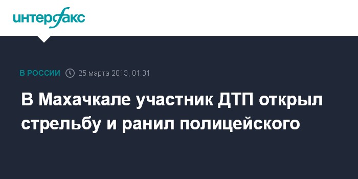 Махачкала. 25 марта. ИНТЕРФАКС-ЮГ - Сотрудник полиции и гражданское лицо получили огнестрельные ранения при пресечении конфликта, возникшего после автоаварии в Махачкале, стрелявший задержан, сообщили агентству "Интерфакс-Юг" в пресс-службе МВД по Дагестану.