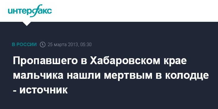 Пропавшего в Хабаровском крае мальчика нашли мертвым в колодце - источник