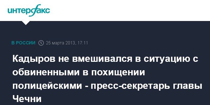 Москва. 25 марта. INTERFAX.RU - Глава Чеченской республики Рамзан Кадыров не вмешивался в ситуацию с обвиненными в похищении человека в августе 2011 года полицейскими, сообщил пресс-секретарь руководителя региона Альви Каримов.