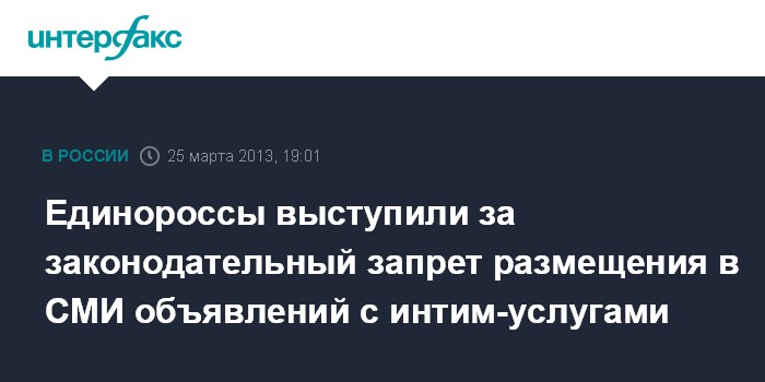 Единороссы выступили за законодательный запрет размещения в СМИ объявлений с интим-услугами