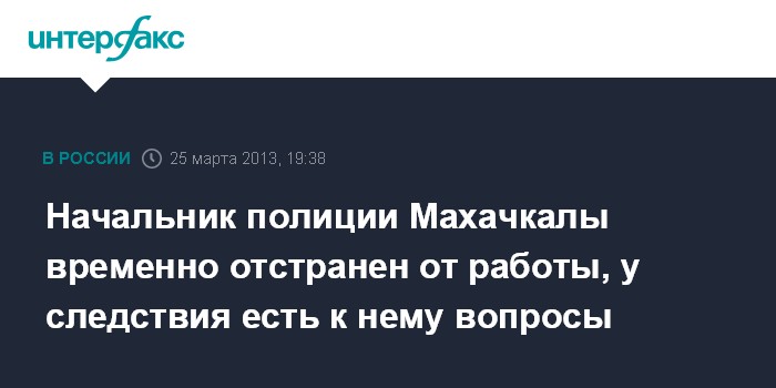 Махачкала. 25 марта. INTERFAX.RU - Замначальника УВД Махачкалы, начальник полиции Раип Ашиков временно отстранен от работы, сообщили "Интерфаксу" в пресс-службе МВД по Дагестану.