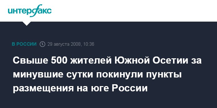 Свыше 500 жителей Южной Осетии за минувшие сутки покинули пункты размещения на юге России