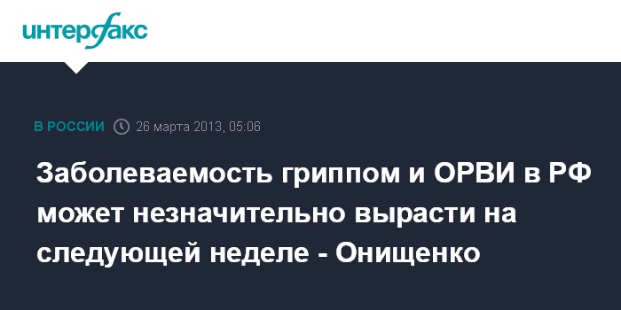 Заболеваемость гриппом и ОРВИ в РФ может незначительно вырасти на следующей неделе - Онищенко