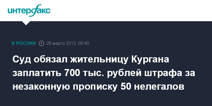 Суд обязал жительницу Кургана заплатить 700 тыс. рублей штрафа за незаконную прописку 50 нелегалов