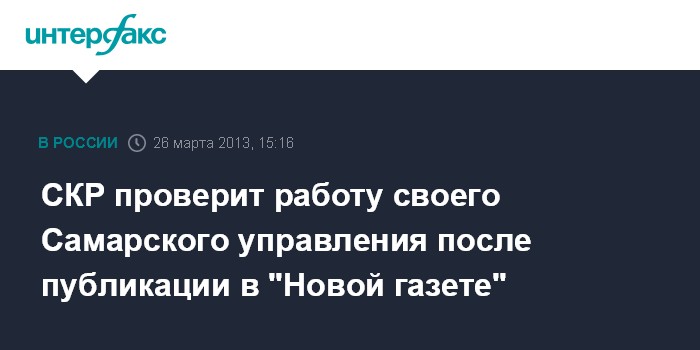 СКР проверит работу своего Самарского управления после публикации в "Новой газете"