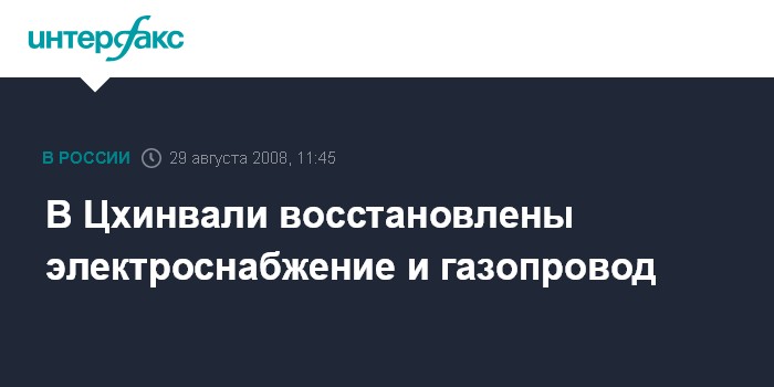 Москва. 29 августа. INTERFAX.RU - Электроснабжение восстановлено на большей части территории Цхинвали, говорится в сообщении федерального оперативного штаба по ликвидации последствий грузинской агрессии в Южной Осетии.