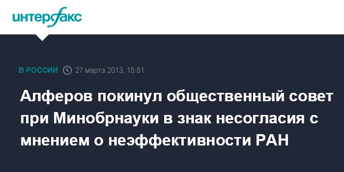 Москва. 27 марта. INTERFAX.RU - Нобелевский лауреат, академик Российской академии наук, депутат Госдумы Жорес Алферов заявил, что в связи с несогласием с позицией главы Минобрнауки Дмитрия Ливанова решил покинуть пост председателя Общественного совета при министерстве.
