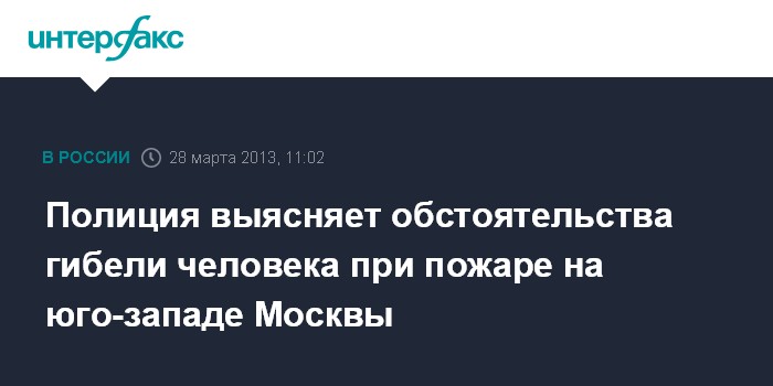Москва. 28 марта. INTERFAX.RU - Один человек погиб в результате пожара в квартире на юго-западе столицы, сообщили "Интерфаксу" в пресс-службе ГУ МВД России по Москве.
