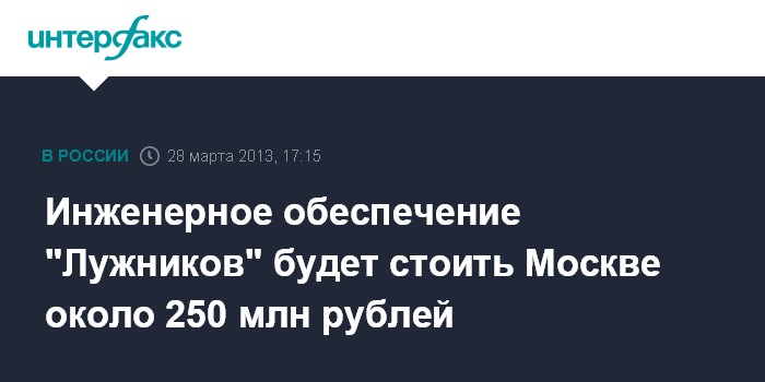 Инженерное обеспечение "Лужников" будет стоить Москве около 250 млн рублей