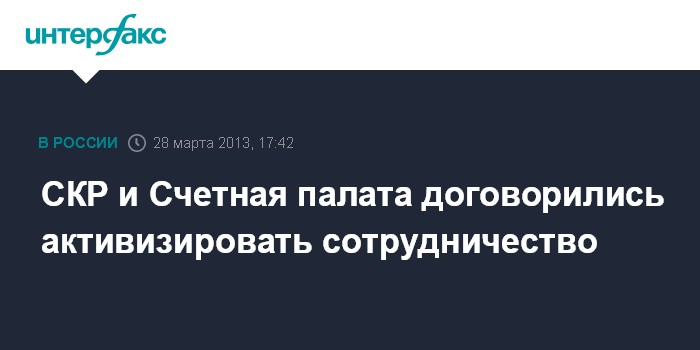Москва. 28 марта. INTERFAX.RU - Главы СКР и Счетной палаты РФ договорились об активизации взаимодействия в сфере расследований по материалам Счетной палаты, сообщил "Интерфаксу" в четверг официальный представитель СКР Владимир Маркин.