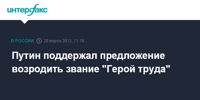 Ростов-на-Дону. 29 марта. INTERFAX.RU - Владимир Путин поддержал идею возродить звание "Герой труда". Соответствующая инициатива может быть реализована уже до конца текущего дня, пообещал глава государства, выступая в пятницу на конференции ОНФ в Ростове-на-Дону.