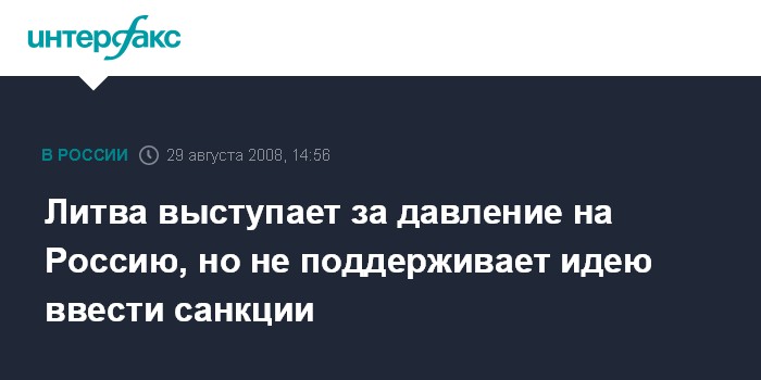 Вильнюс. 29 августа. INTERFAX.RU - В Вильнюсе считают, что Европейский союз по вопросу урегулирования конфликта с Грузией должен оказать на Россию политическое давление, но не прибегать к санкциям.
