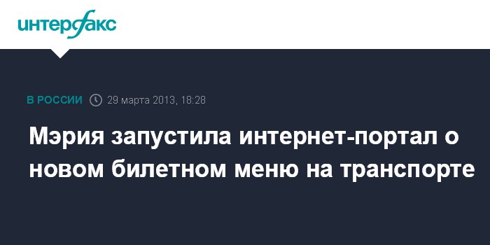 Москва. 29 марта. INTERFAX.RU - Департамент транспорта и развития дорожно-транспортной инфраструктуры Москвы запустил специальный интернет-портал о новом билетном меню, которое вводится со 2 апреля, сообщили в пресс-службе департамента.