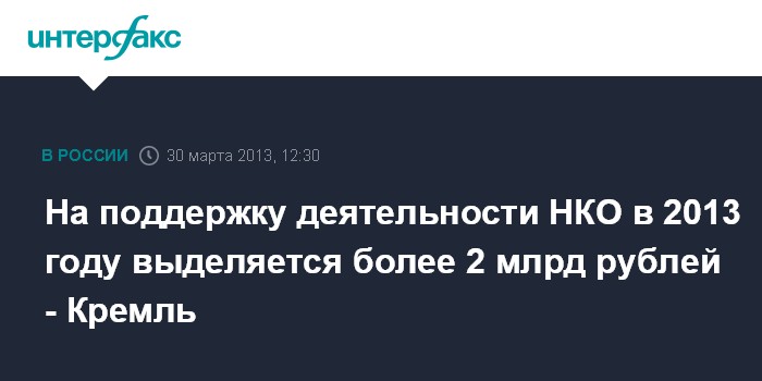 На поддержку деятельности НКО в 2013 году выделяется более 2 млрд рублей - Кремль