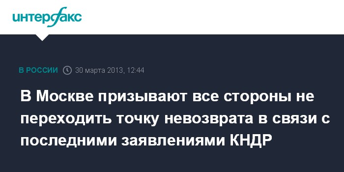 В Москве призывают все стороны не переходить точку невозврата в связи с последними заявлениями КНДР