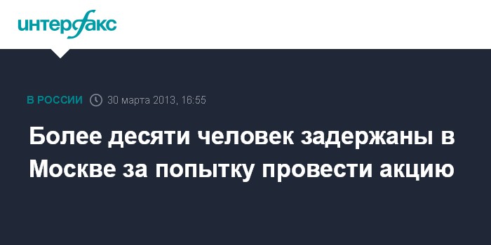 Москва. 30 марта. INTERFAX.RU - В центре столицы полиция задержала 13 человек за то, что они пытались провести несанкционированную акцию, сообщили "Интерфаксу" в пресс-службе ГУ МВД России по Москве.