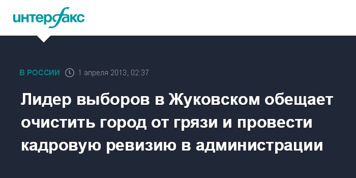 Жуковский. 1 апреля. ИНТЕРФАКС - Лидирующий кандидат на выборах мэра Жуковского Андрей Войтюк благодарит своих избирателей и обещает в первую очередь очистить город от грязи.