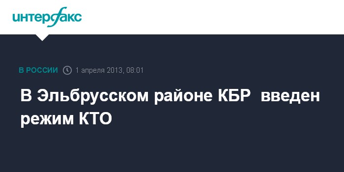 Нальчик. 1 апреля. INTERFAX.RU - На части территории Эльбрусского района введен режим КТО, сообщил в понедельник агентству "Интерфакс-Юг" официальный представитель Оперативного штаба в Кабардино-Балкарии.