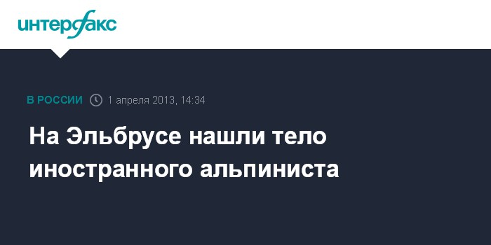 Пятигорск. 1 апреля. INTERFAX.RU - На склоне Эльбруса (Кабардино-Балкария) в понедельник днем спасатели обнаружили тело, предположительно, одного из двух пропавших иностранных альпинистов, сообщил агентству "Интерфакс-Юг" руководитель пресс-службы Северо-Кавказского регионального центра МЧС Кантемир Давыдов.