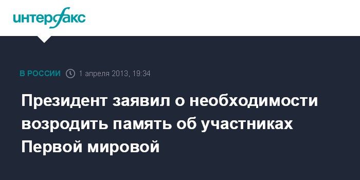 Президент заявил о необходимости возродить память об участниках Первой мировой