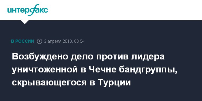 Возбуждено дело против лидера уничтоженной в Чечне бандгруппы, скрывающегося в Турции